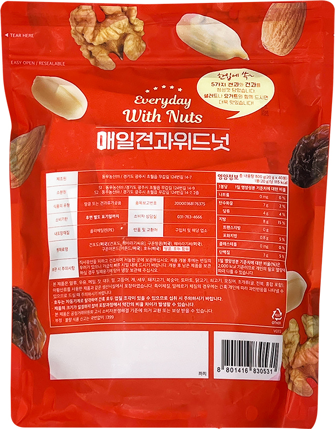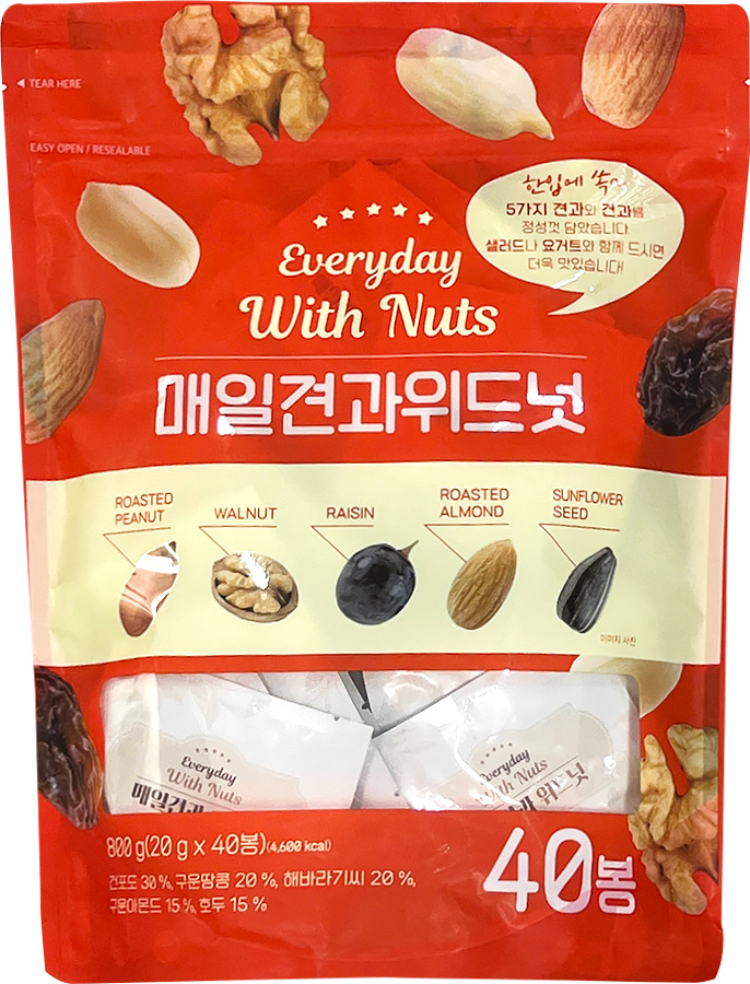 원재료명 및 함량건포도(미국)[건포도, 해바라기씨유], 구운땅콩(미국), 해바라기씨(미국), 구운아몬드[아몬드/미국], 호두(미국)