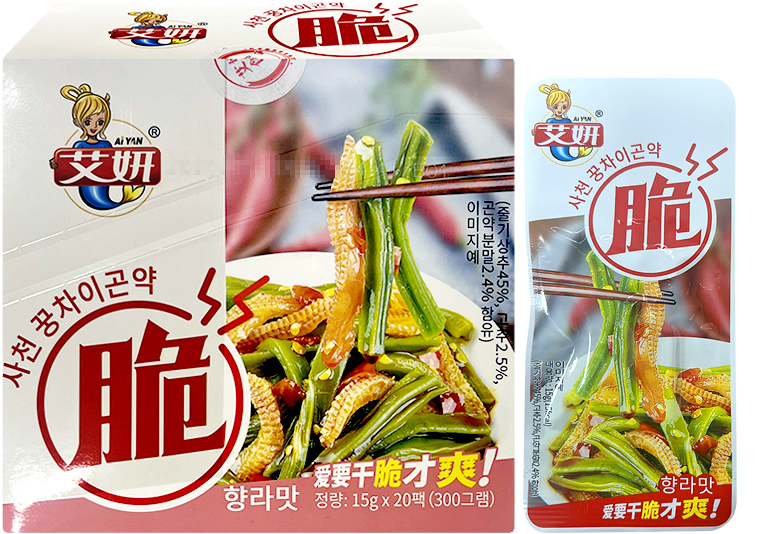 사천 꿍차이곤약(향라맛)(줄기상추 45%, 고추2.5%, 곤약분말 2.4% 함유) |