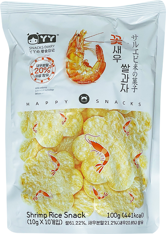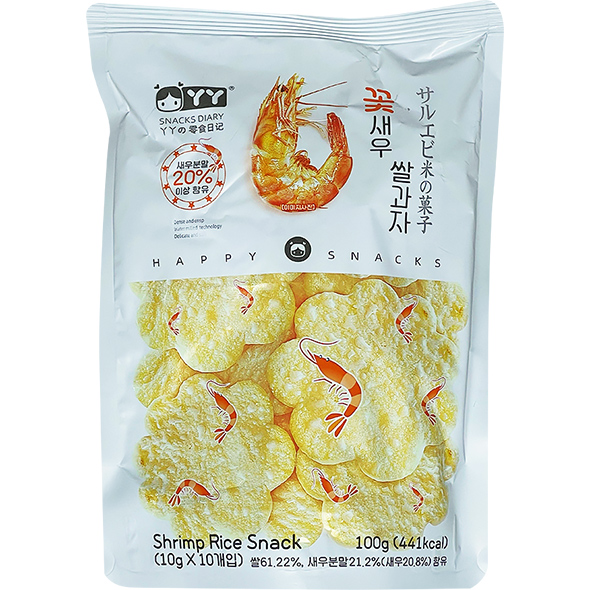 꽃모양 새우 쌀과자-쌀 61.22%, 새우분말 21.2%(새우20.8%)함유 |