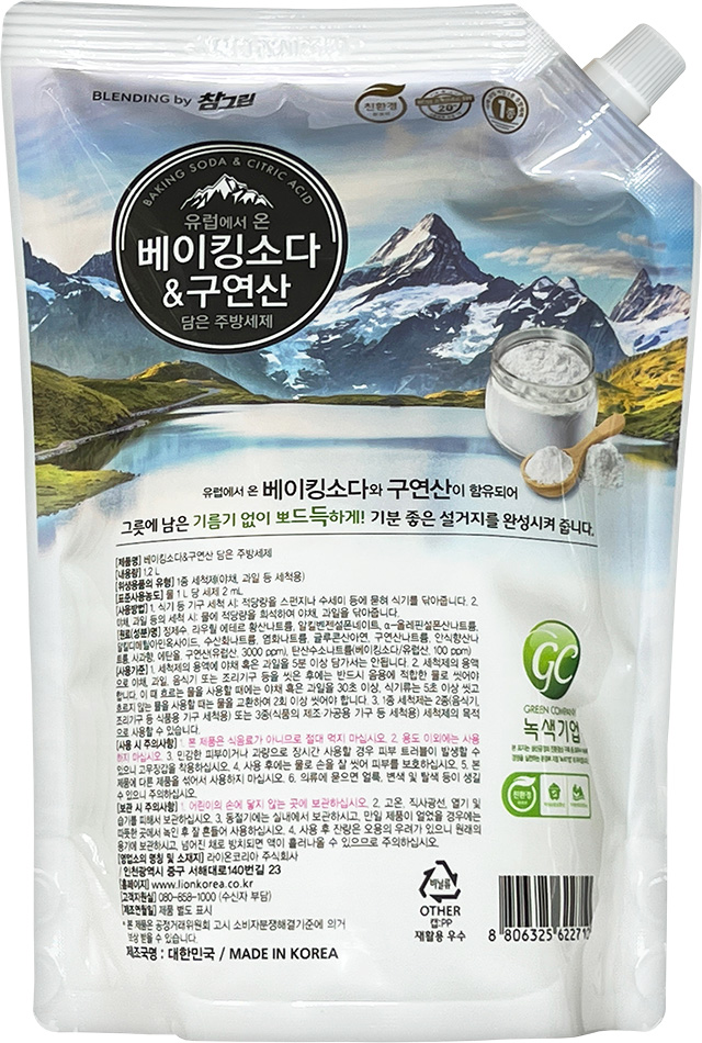 라이온 참그린 유럽에서 온 베이킹소다 & 구연산 담은 주방세제 1.2L