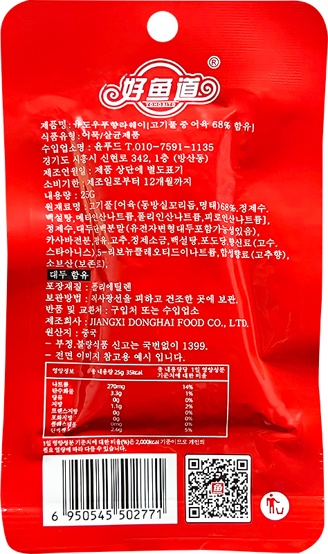 생산자 : JIANGXI DONGHAI FOOD CO., LTD, 수입자 : 윤푸드, 제조국 : 중국