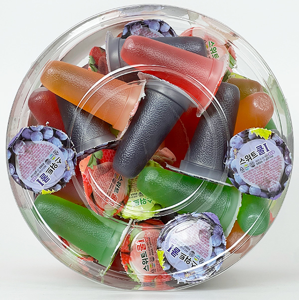 딸기향 / 정제수, 기타과당, 설탕, 포도당, 혼합제제[카라기난, 로커스트콩검, 염화칼륨, 젖산칼슘, 포도당], DL-사과산, 딸기향(합성향료), 구연산, 딸기농축액(이스라엘산, 고형분 65%)0.1%, 효소처리스테비아, 식용색소적색제40호(착색료), 복숭아향 / 정제수, 기타과당, 설탕, 포도당, 혼합제제[카라기난, 로커스트콩검, 염화칼륨, 젖산칼슘, 포도당], DL-사과산, 복숭아향(합성향료), 구연산, 복숭아농축액(이스라엘산, 고형분68%)0.1%, 효소처리스테비아, 식용색소황섹제5호(착색료), 사과향 / 정제수, 기타과당, 설탕, 포도당, 혼합제제[카라기난, 로커스트콩검, 염화칼륨, 젖산칼슘, 포도당], DL-사과산, 사과향(합성향료), 구연산, 사과농축과즙(국산, 고형분72%)0.1%, 효소처리스테비아, 식용색소혼합녹색(착색료)[식용색소청색제1호, 식용색소황색제4호], 포도향 / 정제수, 기타과당, 설탕, 포도당, 혼합제제[카라기난, 로커스트통검, 염화칼륨, 젖산칼슘, 포도당], DL-사과산, 포도향(합성향료), 구연산, 포도농축액(미국산, 고형분68%)0.1%, 효소처리스테비아, 식용색소적색제40호(착색료), 식용색소청색제1호(작색료)