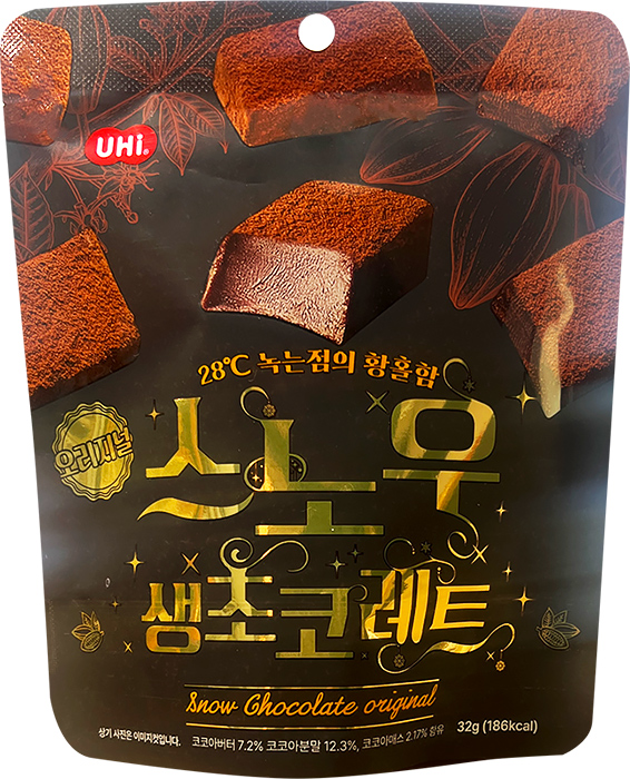 식물성유지(팜유, 팜핵유, 경화팜핵유), 설탕, 유청분말14.7%, 코코아분말 12.3%, 전지분유 8.58%, 코코아버터7.2%, 코코아매스 2.17%, 대두레시틴(유전자변형대두포함가능성있음), 바닐린 ※우유, 대두 함유
