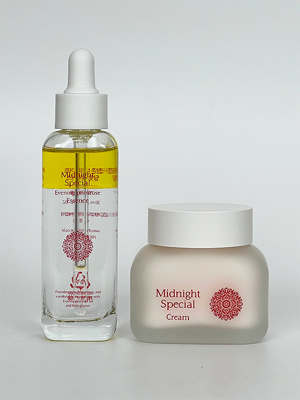[에센스 전성분] 정제수, 세틸에틸헥사노에이트, 글리세린, 페닐트라이메콘, 나이아신아마이드, 에탄올, 달맞이꽃오일(1.0%), 글리세릴카프릴레이트, 소듐클로라이드, 로즈우드오일, 해바라기씨오일, 하이드록시에틸셀룰로오스, 아데노신, 다이소듐이디티에이, 돌콩오일, 1,2-헥산다이올, 부틸렌글라이콜, 바실러스/소이빈발효추출물, 아나토씨오일, 토코페롤, 복령추출물, 효모베타-글루칸, 페녹시에탄올, 제라니올, 리날룰, 벤질벤조에이트, 리모넨 [크림 전성분]정제수, 부틸렌글라이콜, 글리세린, 다이메티콘, 세틸에틸헥사노에이트, 하이드로제네이티드폴리데센, 옥시다이즈드옥수수오일, 세틸알코올, 바틸알코올, 글리세릴스테아레이트, 스테아릭애씨드, 알지닌, 토코페릴아세테이트, 카보머, 글리세릴카프릴레이트, 스테아릴글리시레티네이트, 카프릴릭/카프릭트라이글리세라이드, 에칠헥실메톡시신나메이트, 발레이추출물, 레시틴, 다이소듐이디티에이, 레티닐팔미테이트, 펜타에리스리탈테트라-다이-t-부틸하이드록시하이드로신나메이트, 세리신, 우유단백질추출물, 비피다발효용해물, 뽕나무뿌리추출물, 소듐하이알루로네이트, 하이드롤라이즈드콩단백질, 세라마이드엔피, C-12애씨드트라이글리세라이드, 콜레스테롤, 1,2-헥산다이올, 마그네슘아스코빌포스페이트, 하이드로제네이티드레시틴, 피토스핑고신, 프로필렌글라이콜, 락틱애씨드, 시팀우드검추출물, 올레익애씨드, 잔탄검, 소르빅애씨드, 폴리솔베이트20, 칡뿌리추출물, 포타슘솔베이트, 포도주추출물, 아테로콜라겐, 알로에베라잎추출물, 크롤렐라미누티시마추출물, 아세틱애씨드, 소듐콘드로이틴설페이트, 페녹시에탄올, 황색4호, 적색504호, 향료, 쿠마린, 리눌룰, 벤질벤조에이트, 시트로넬올, 헥실신나몰, 리모넨, 알파-아이소메틸아이오논 |