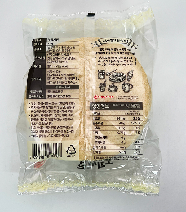곡류가공품(밀가루(호주산, 미국산), 쌀가루(국산), 정제대두유, 사카린나트륨, 정제소금) |